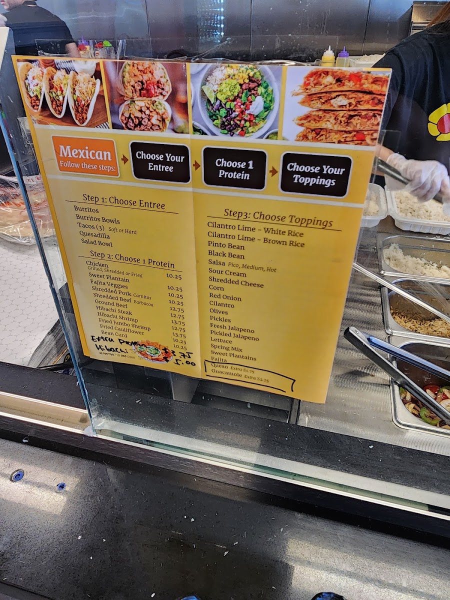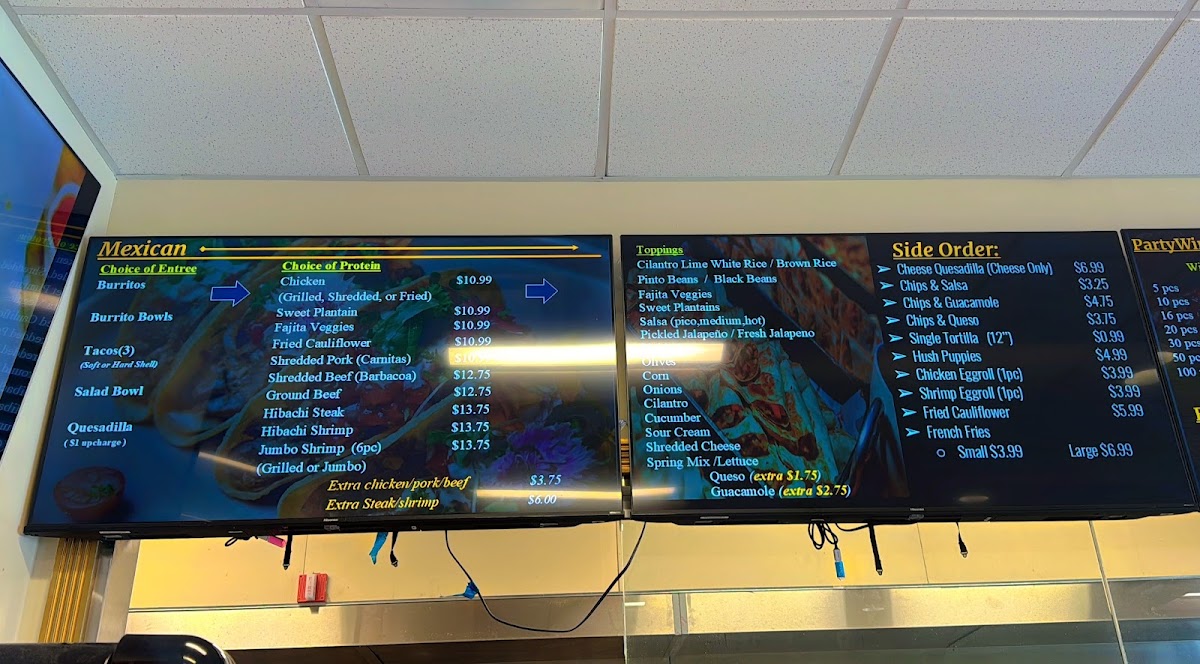 A generous wrap filled with your choice of protein including fajita veggies, chicken varieties, pork carnitas, hibachi steak, ground beef, shrimp options, or fried bean curd.